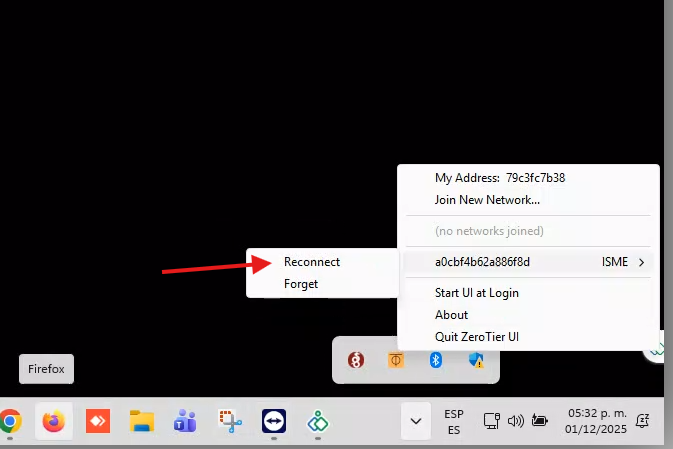 Busca el icono de ZeroTier (círculo amarillos/negro).